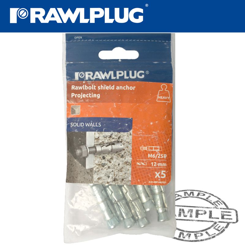 PROJECTING BOLT M6X80X25MM X5 -BAG